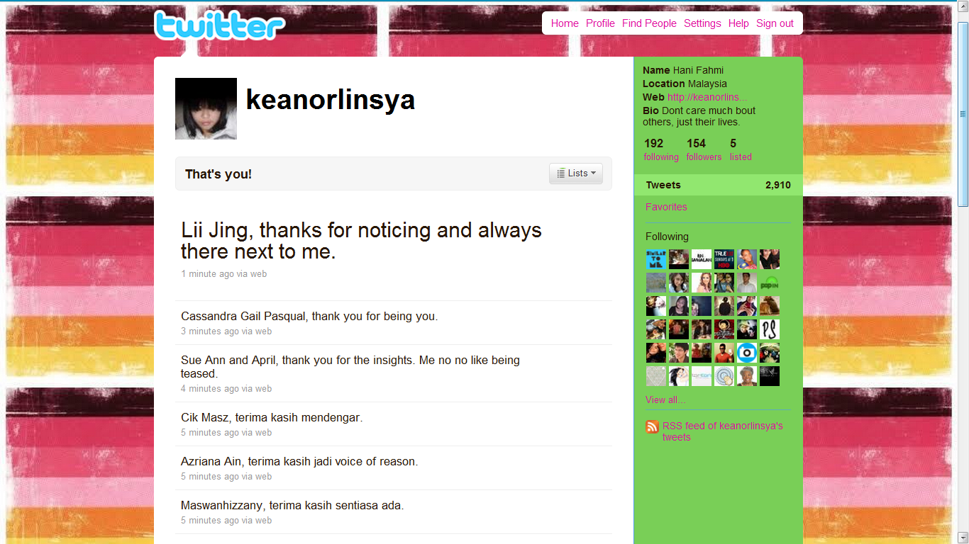 myself. Therefore, I tried to take my mind of things that made me, not me. Now, I'm better. I shall not assume the little, random things that happened need detailed analysis or see them as signs. I will not allow myself to fall into the same place again. I hate to see myself vulnerable. I don't think I'm ready to be that Hani who is easily hurt, who can break easily. Just because she has someone to rely on.